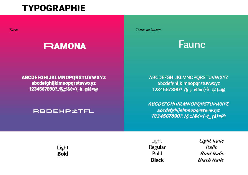 • le choix typographique pour les titres : les lettres (en Ramona) s’allongent et se rétrécissent au fil du temps,