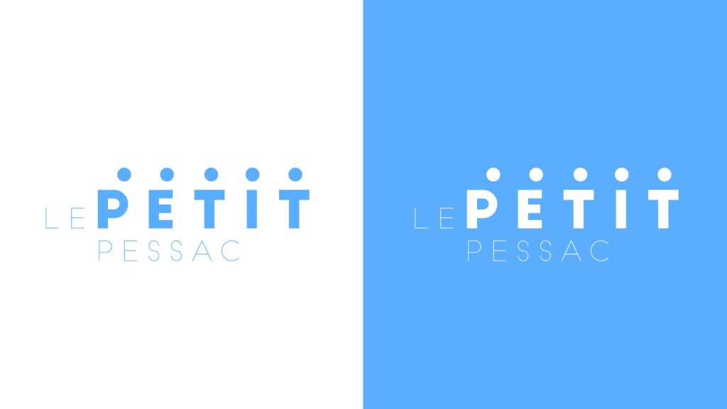 - Les graisses et les noms des typographies choisies pour le logo sont en cohérence avec le discours de marque. Nous avons opté pour un jeu malin entre la typo Big John très grasse pour le mot « PETIT » et la typo complémentaire Slim Joe plus fine pour « LE » et « PESSAC.