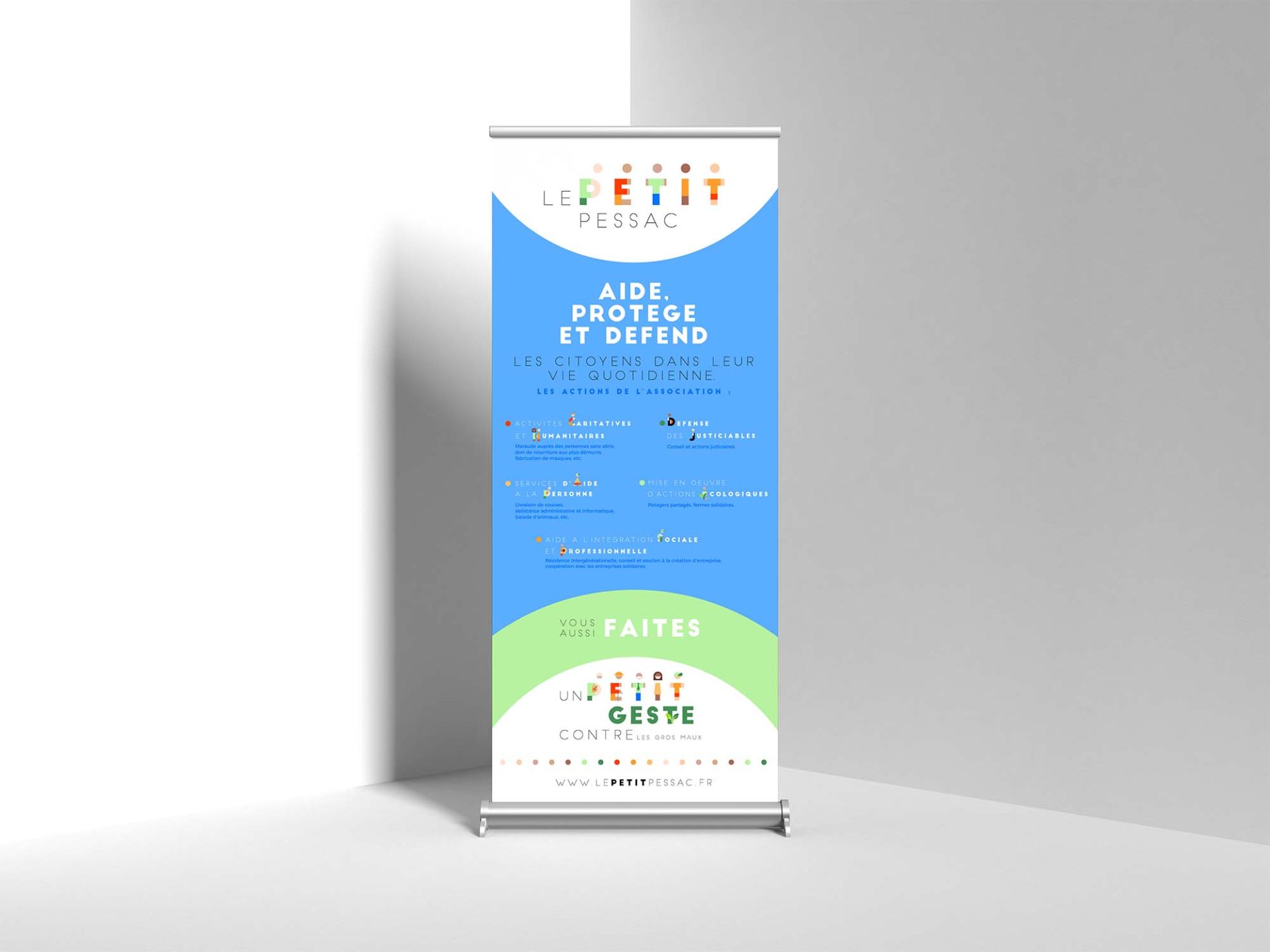 - créé un kakémono, appelé également roll-up, pour être visible sur les actions terrain.