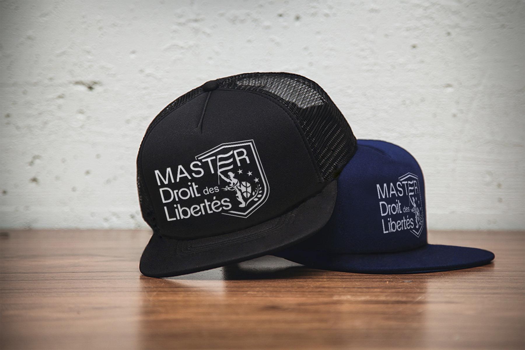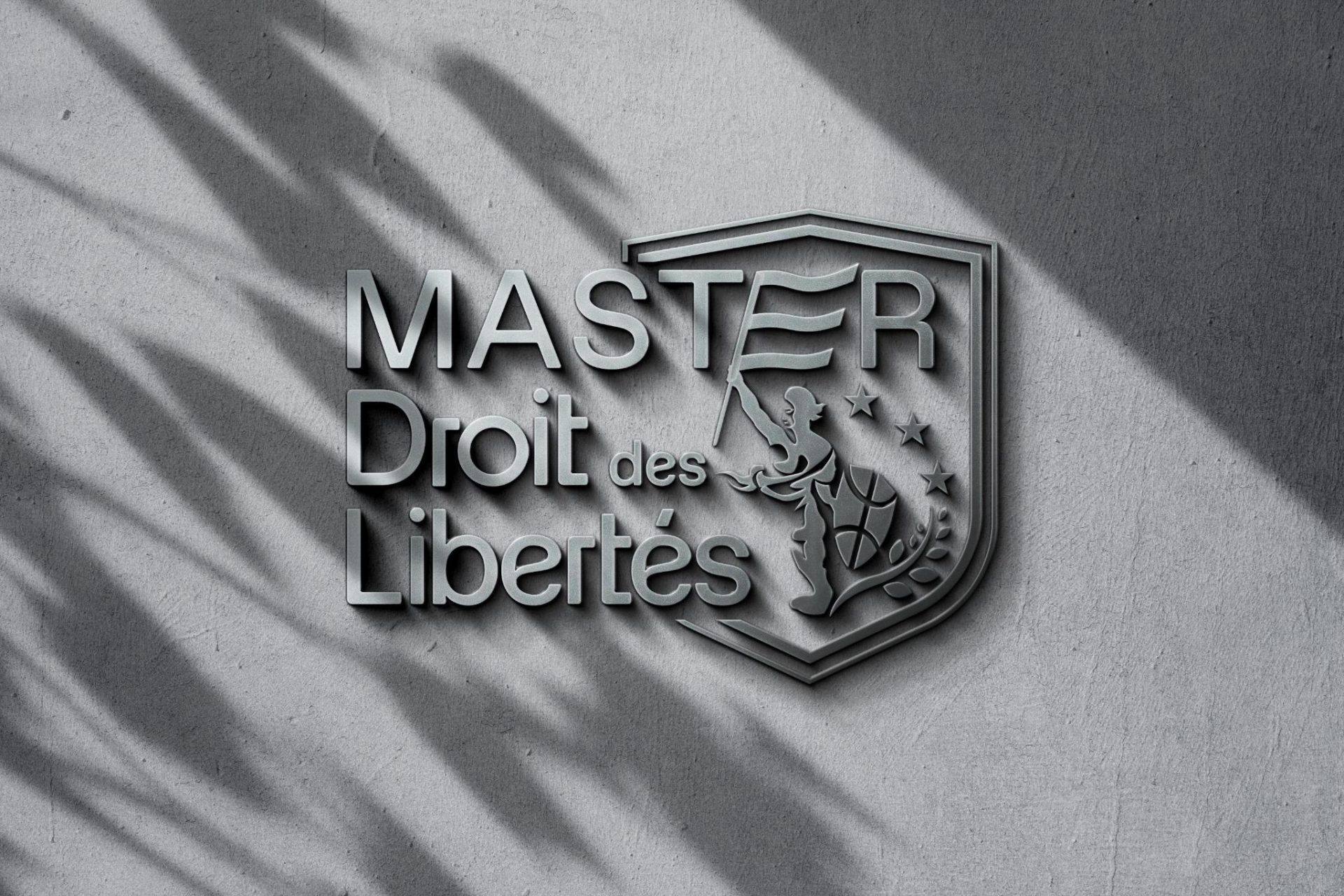 > La typographie joue sur la dualité « angles » et « arrondis » pour véhiculer à la fois l’aspect sérieux du sujet traité et du Master mais également la douceur du concept des libertés.