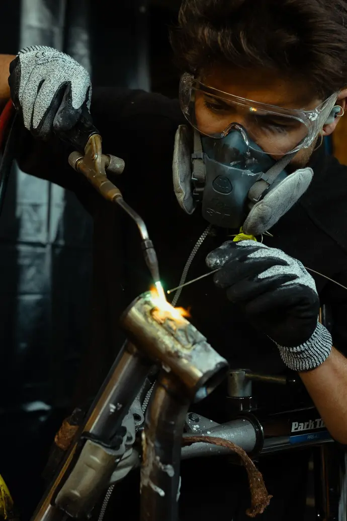 Le cadre SOUM est un irréductible : son caractère artisanal lui confère une originalité indéniable. Adapté à un besoin et à une morphologie spécifiques, il a sa nature propre : on ne peut l’assimiler à quoi que ce soit d’autre. Le headbadge brasé à l’avant affirme sa singularité. Voici les étapes de brasure du logo :