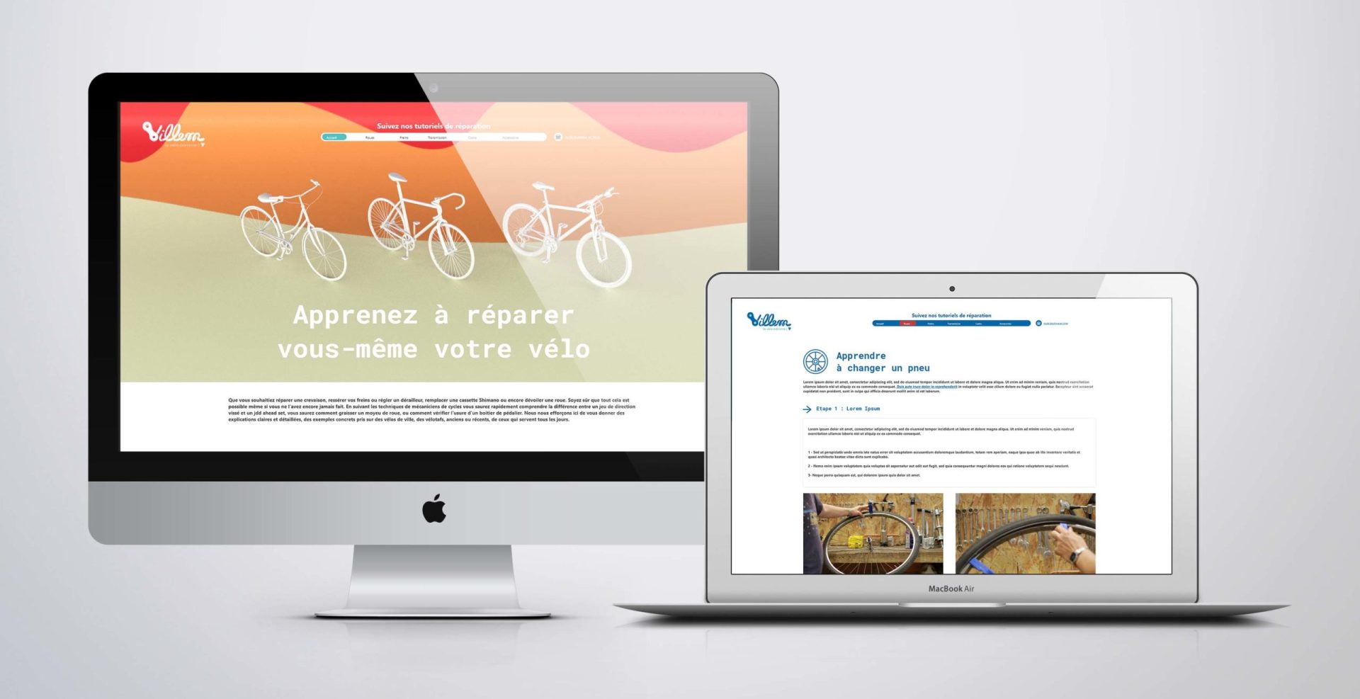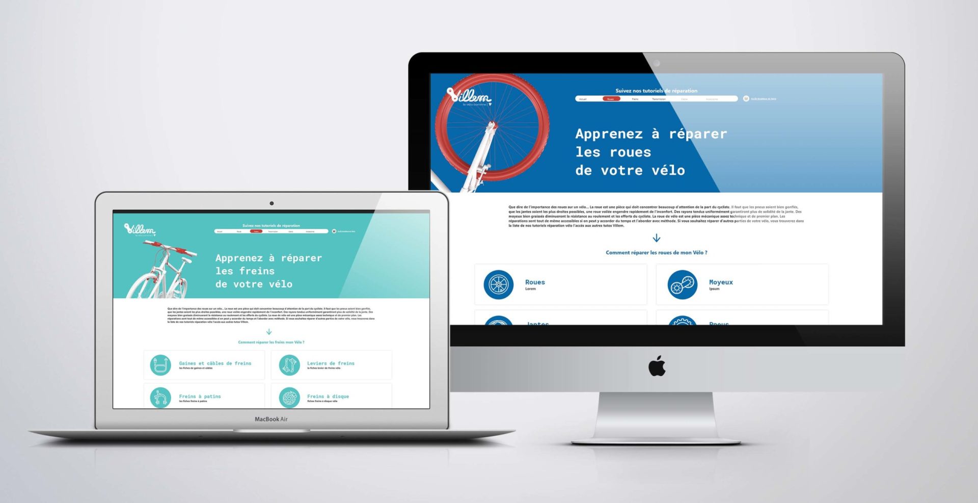 Le studio Rêver les Futurs a designé les maquettes du site e-commerce villem.com. Le canal de communication principal étant le blog pour l’acquisition, avec notamment les tutoriels d’aide à la réparation, nous avons également réalisé les maquettes ainsi que tout un set de pictogrammes spécifiques aux pièces détachées du vélo.